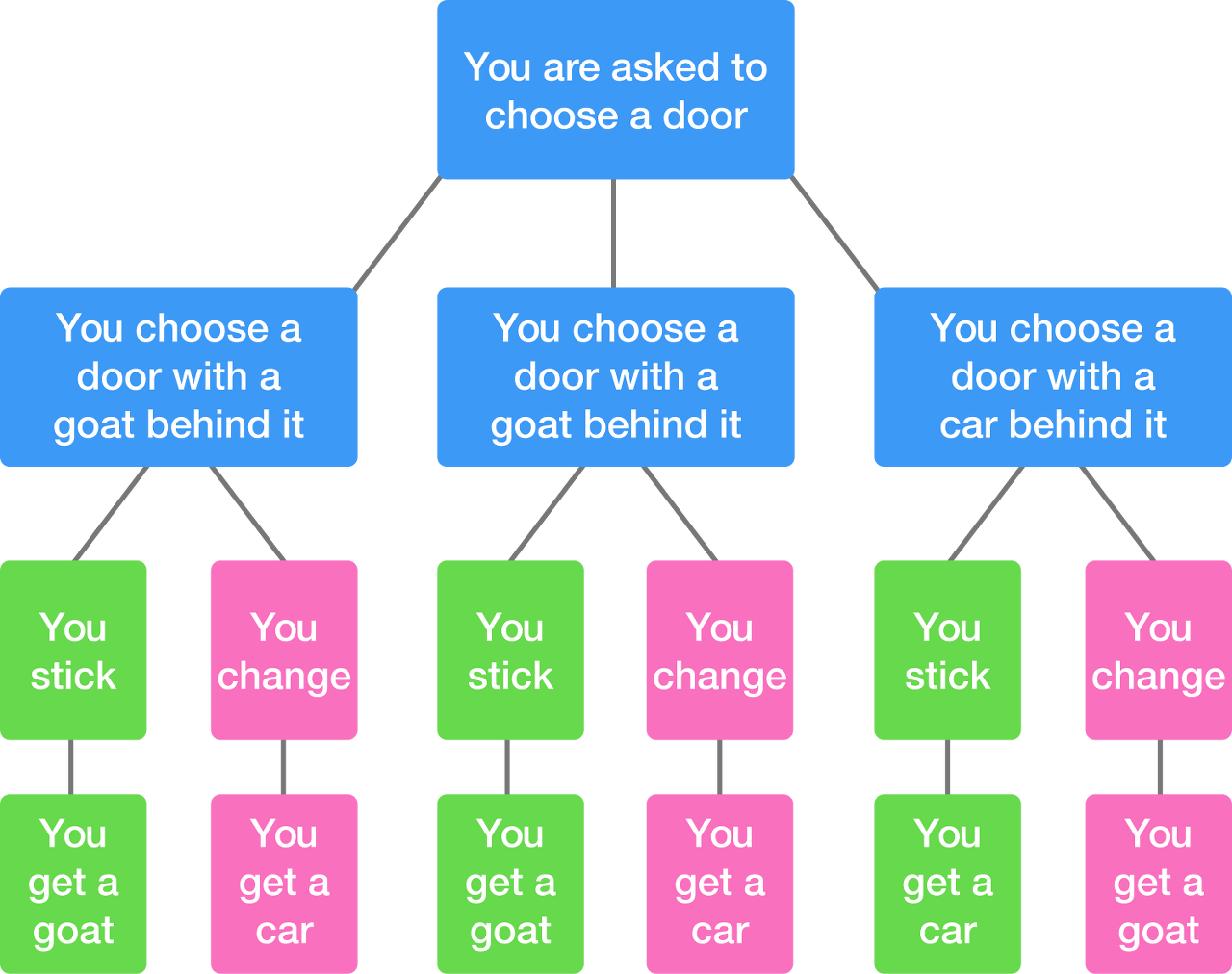 - 게임자가 하나의 문을 선택하면 호스트는 무조건 상품이 들어있지 않은 문을 랜덤하게 하나 오픈해야 함.