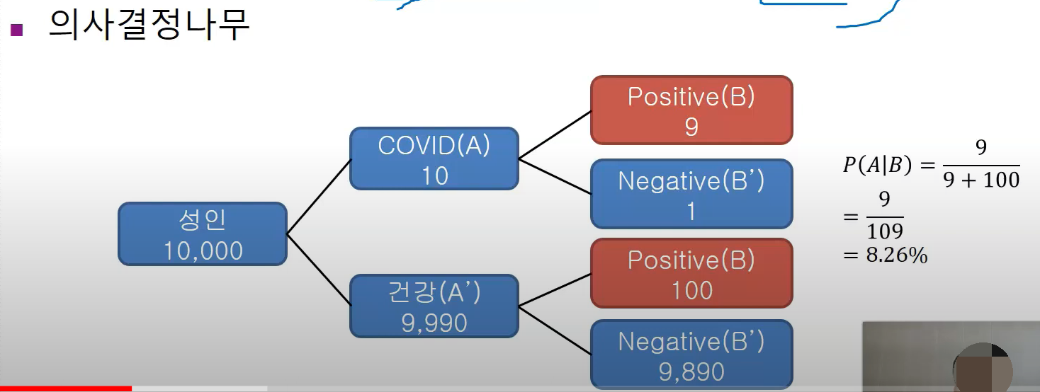 - P(A|B) : 결과(B)가 나온 이후에 원인(A)일 확률