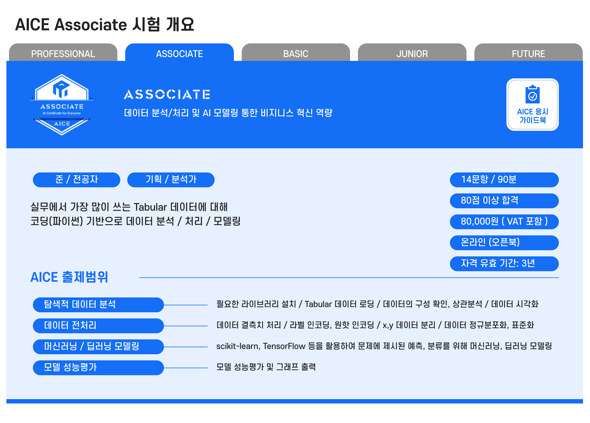 AICE Associate는 실무에서 AI를 활용하는 역량을 습득하고 진단하기 위해 개발하였습니다.